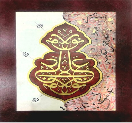آيات سورة الشرح المباركة، التي تبث في النفس الطمأنينة والبشرى، كُتبت بأسلوب فني يجمع بين الخط الديواني وخط الإجازة المهيب